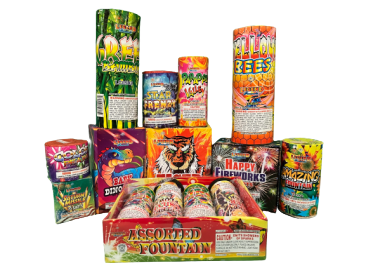 An assortment of aerial cakes and fountains.